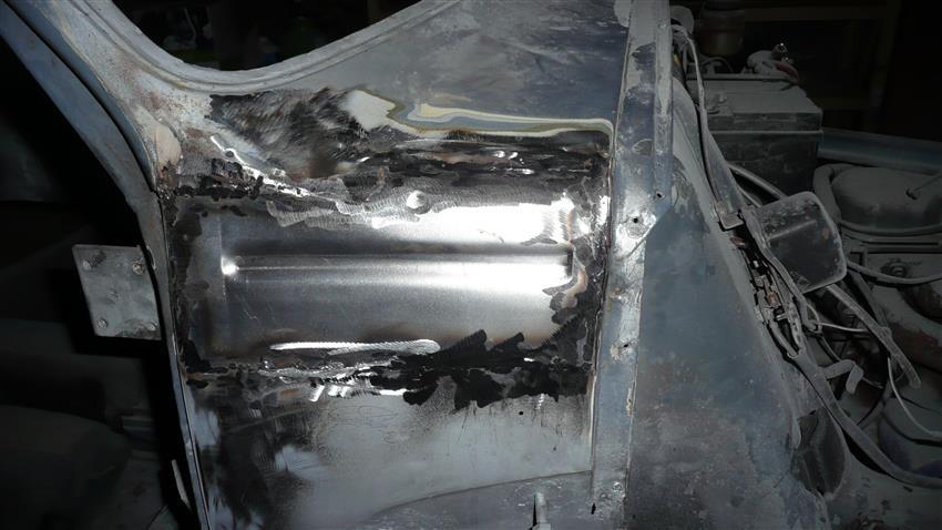 Dan aan de slag: alles demonteren, alle roest eruit geslepen, nieuwe stukken ingelast, alles vertint en zo weinig mogelijk vulmiddel gebruikt.