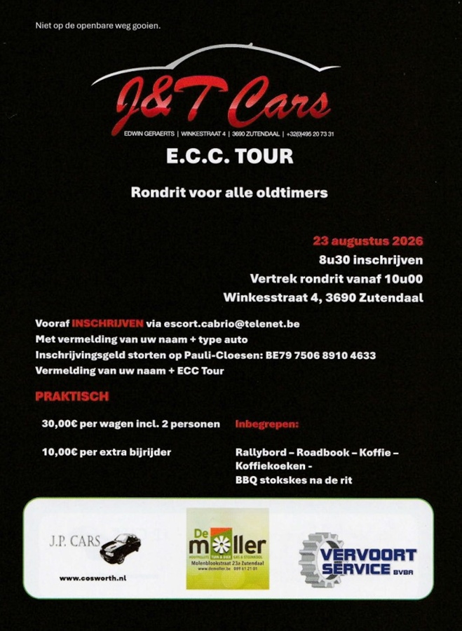 Mooie rondrit voor Oldtimers die zoals gekend start met een klein ontbijt en eindig met een stokskes BBQ. Rondritrit van +/- 120 km over landelijke wegen. We zien jullie graag op zondag 23 augustus 2026 te Wiemesmeer-Zutendaal. Alle info vind je verder op bijgevoegde folder.