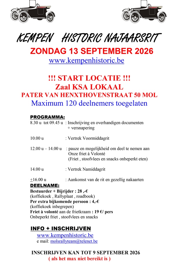 Vanaf maart kan u op onze website www;kempenhistoric.be alle INFO terugvinden .