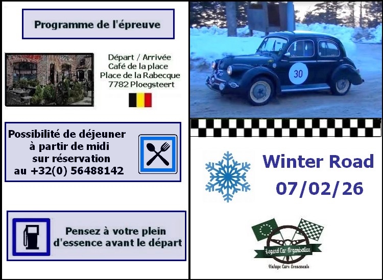 Rallye au road book de +/- 100 Kms avec classement pour Oldtimers et Youngtimers