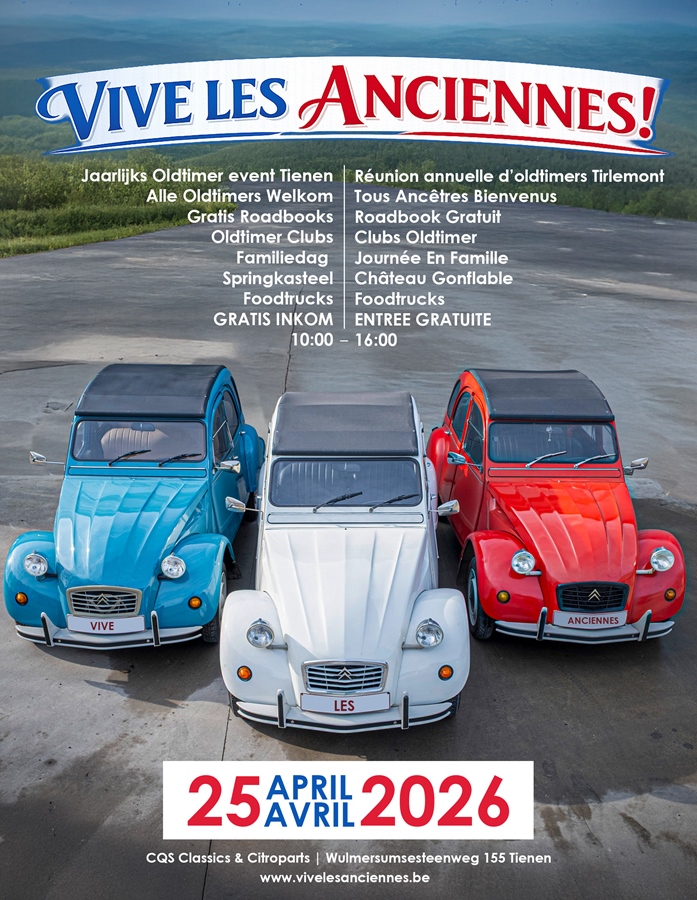 Op 25 April organiseren CQS Classics en Citroparts de tweede editie van VIVE LES ANCIENNES! Kort samengevat is het een dag waarop we de oldtimer vieren met een Franse touch. Of je nu een trotse eigenaar bent van een oldtimer of gewoon geniet van tijdloze autodesign, dit is hét evenement voor liefhebbers van klassieke wagens! IEDEREEN IS WELKOM