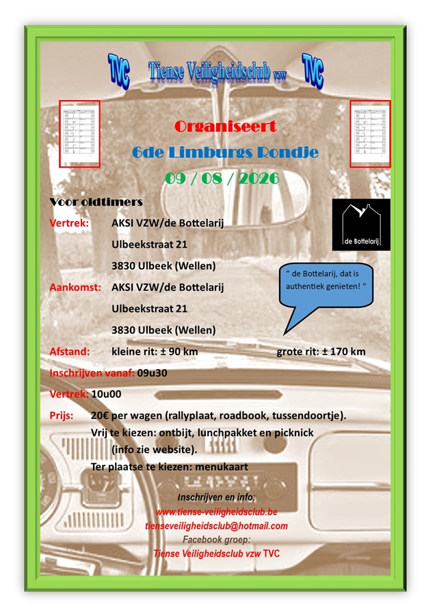 Op zondag 9 augustus 2026 organiseren we ons 6de Limburgs Rondje voor oldtimers.
