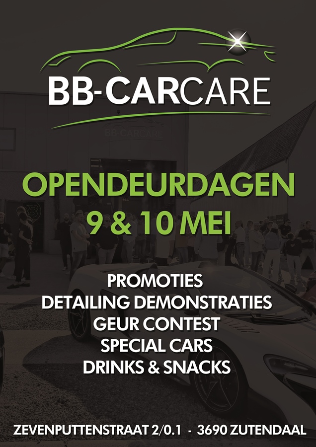Op zaterdag 9 & zondag 10 mei gooien we bij BB-CARcare opnieuw de deuren open voor iedereen met een passie voor auto's en detailing!