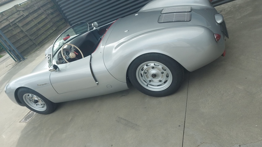 Prachtige Porsche 550 Spyder, de wagen waar James Dean jammergenoeg in overleed.